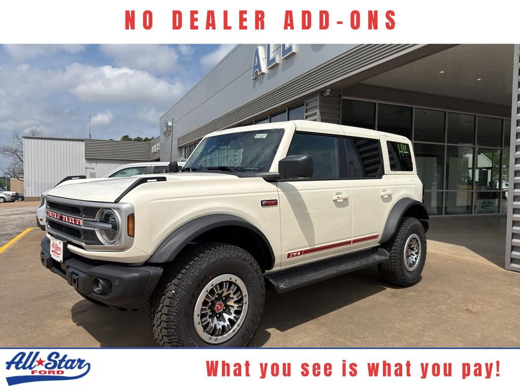 2026 Ford Bronco Outer Banks 4WD - Palestine, TX. Ready for Texas backroads and weekend escapes, this Ford Bronco pairs rugged capability with refined comfort. Powered by a responsive 2.7L V6 gasoline engine and full-time 4WD, it delivers confident performance whether you're navigating city streets or tackling off-road trails. The Off-Road Package adds enhanced suspension, skid plates, and aggressive tires for serious trail capability. Step inside to premium leather seats and a thoughtfully designed cabin with convenient features like Remote Start and integrated Navigation for stress-free trips. Smartphone integration via Android Auto keeps your favorite apps, music, and hands-free calling accessible and safe while driving. Practical cargo space and durable materials make this vehicle ideal for daily use and adventure-packed weekends. Located in Palestine, TX, this 2026 Ford Bronco Outer Banks is attractively priced - offering the best price in the area for comparable models. Well-equipped, mechanically sound, and equipped for both comfort and rugged terrain, it's an exceptional value for buyers seeking versatility and style. Contact us to schedule a test drive or to get details on financing and availability. Don't miss this opportunity to own a capable, feature-rich Ford Bronco at a competitive price in Palestine.