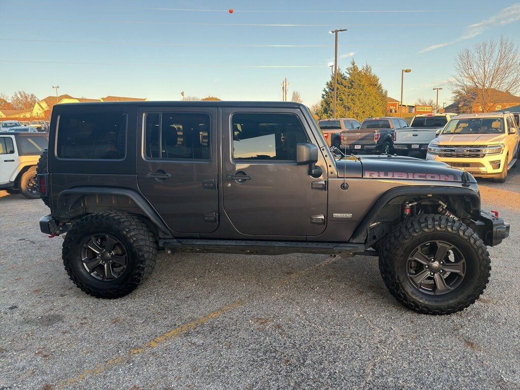 Max Tow Package: Class II Receiver Hitch; Trailer Tow with 4-Pin Connector Wiring Quick Order Package 24Z Rubicon Recon: 17 X 7.5 Granite Crystal Aluminum Wheels; Heated Front Seats; Premium EVIC Message Center; HD Rock Rails with Step Pad; Recon Decals; Black Fuel Filler Door; Low Gloss Wrangler JK Decal; Recon Package; Accent Stitching; Steel Front Bumper; Remote Start System; MOPAR Black Tail Lamp Guards; Air Conditioning with Auto Temp Control; Recon Leather Seats; MOPAR Grab Handles; Red Seat Belts; Midnight Star Interior Accents; Logloss Granite Crystal Jeep Badge; Recon Grille; Hood with Power Dome; Red Switches; Jeep Trail Rated Kit; Red Trail Rated Badge; Dana 44/226MM Rear Axle; Dana M44/216MM Front Axle; MOPAR Slush Mats with Red Accents; Red Front and Rear Tow Hooks; Recon Badge; Steel Rear Bumper Connectivity Group: Vehicle Information Center; Uconnect Voice Command with Bluetooth; Tire Pressure Monitoring Display Quick Order Package 23Z Rubicon Recon: 17 X 7.5 Granite Crystal Aluminum Wheels; Heated Front Seats; Premium EVIC Message Center; HD Rock Rails with Step Pad; Recon Decals; Black Fuel Filler Door; Low Gloss Wrangler JK Decal; Recon Package; Accent Stitching; Steel Front Bumper; MOPAR Black Tail Lamp Guards; Air Conditioning with Auto Temp Control; Recon Leather Seats; MOPAR Grab Handles; Red Seat Belts; Midnight Star Interior Accents; Logloss Granite Crystal Jeep Badge; Recon Grille; Hood with Power Dome; Red Switches; Jeep Trail Rated Kit; Red Trail Rated Badge; Dana 44/226MM Rear Axle; Dana M44/216MM Front Axle; MOPAR Slush Mats with Red Accents; Red Front and Rear Tow Hooks; Recon Badge; Steel Rear Bumper 430 Nav Radio Add 4.10 Axle Ratio Black 3-Piece Hard Top Remote Start System Freedom Top Hard Top Headliner **Equipment listed is based on original vehicle build and subject to change. Please confirm the accuracy of the included equipment by calling the dealer prior to purchase.**